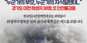 경기도 이천 물류창고 화재 사망자의 명복을 빌며 유가족에게 심심한 애도를 표합니다 (2020.4.30)안타까운 죽음 앞에 또다시 마음의 눈물을 흘립니다....