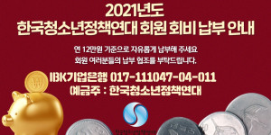 2021년도 정책연대 회비 납부 협조 안내 (2021. 5. 4) 회원님, 2021년도 정책연대 회비 납부에 협조를 부탁드립니다.1/4분기가 지나고 ...