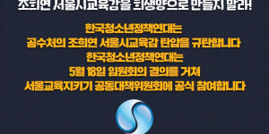 '서울교육지키기 공동대책위원회' 공식 참여 공지 (2021. 5. 19) 한국청소년정책연대는 공수처의 조희연 서울시교육감 탄압을 규탄합니다.한국청소년...
