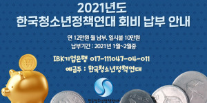 2021년도 정책연대 연회비 납부 협조 안내 (2021.1. 13)안녕하세요. 한국청소년정책연대입니다.2021년도 정책연대 연회비 납부에 협조를 부탁드...