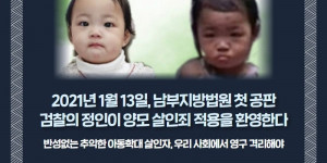 안녕하세요. 한국청소년정책연대입니다.오늘 서울남부지방법원에서 정인이 양모 장하영에 대한 첫 공판이 있었습니다. 검찰은 살인죄를 적용했습니다.“검찰의 정인...
