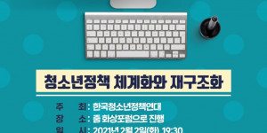 한국청소년정책연대 청소년정책 정례포럼 개최 안내 (2021.1. 27) 안녕하세요. 한국청소년정책연대입니다.오는 2월 2일(화) 저녁 7시 30분에 Z...