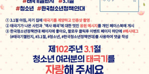 대한민국 청소년 온라인 태극기 챌린지 개최 안내 (2021.2. 24) 안녕하세요. 한국청소년정책연대입니다.제102주년 3.1절을 맞아 [대한민국 청...
