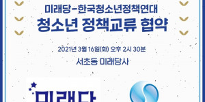 미래당, 한국청소년정책연대 제안 청소년 의제 20개항 수용 (2021.3. 11) 4월 7일 서울시장 보궐선거와 관련, 각 정당 서울시장 후보들에게 행복...