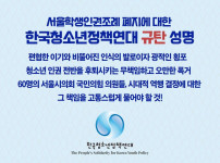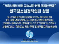 한국청소년정책연대는 서울시의회 국민의힘 의원들이 추진중인 서울 고등학생들의 학원 교습시간 연장 시도를 반대하며 이의 즉각적 철회를 요구한다. ...