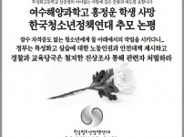 여수해양과학고 홍정운 학생 사망 추모 논평잠수 자격증도 없는 청소년에게 물 아래에서의 작업을 시키다니 제 정신입니까..한국청소년정책연대는 정부에 요구합...